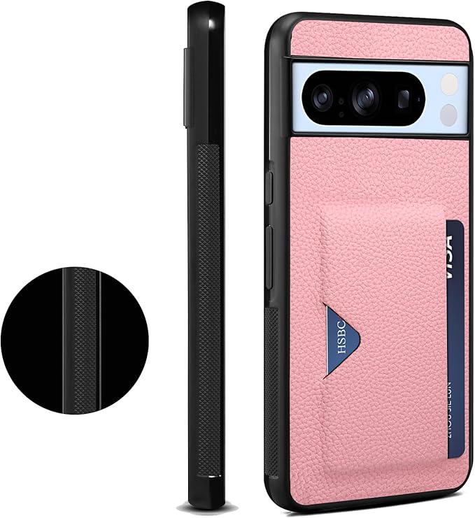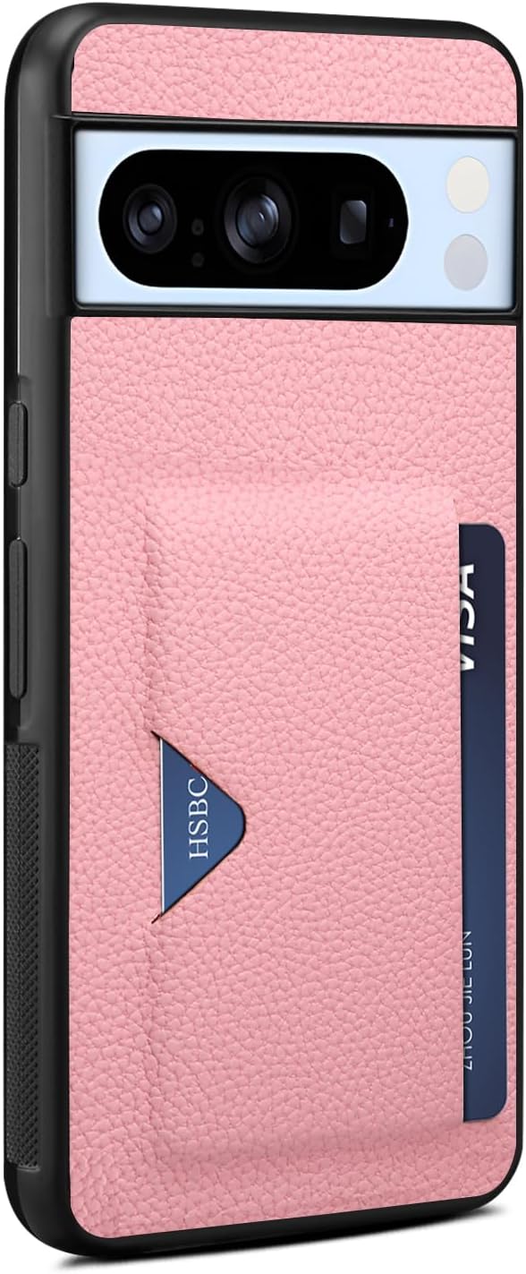 【2024 新登場! 背面カード収納付】Google Pixel 8 Pro ケース カード入れ 上質な手触り Pixel8 Pro カバー 耐衝撃 軽量 薄い ICカード収納 ハンドメイド ギフト おしゃれ シンプル 大人可愛い メンズ レディース スマホケース スマホケース Sim-series (Google Pixel 8 Pro、ピンク)