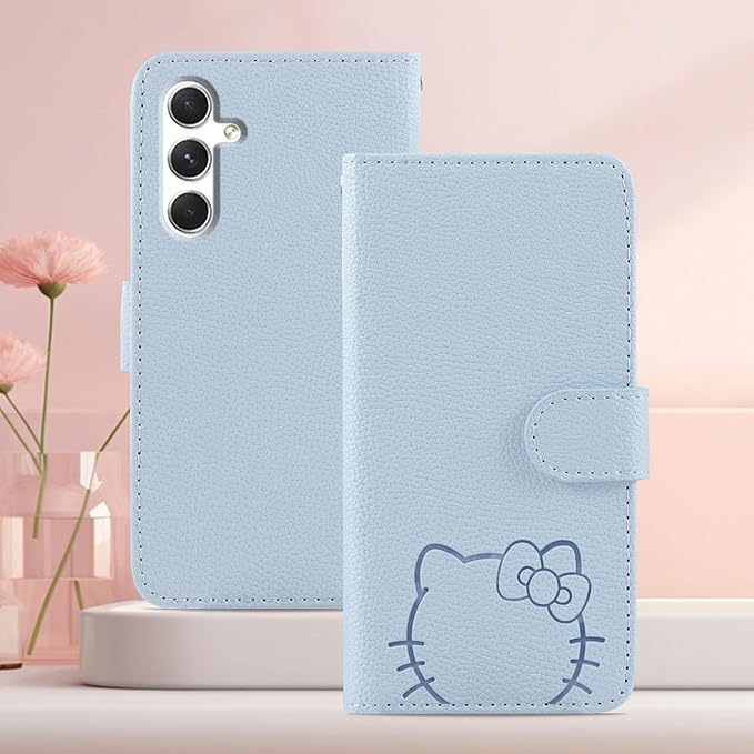Kedic Galaxy S24 ケース 手帳型 Galaxy S25 ケース 大きな花の顔の猫のパターン ケース ギャラクシーs24 ケース SCG31 カバー ギャラクシーS25 スマホケース 手帳型 Galaxy SC-51E SC-51F ケース SCG25 ケース の選択 指紋なし 適度な厚さ 軽量グリップ 柔軟性 より包括的な保護 スマホ スタンド ライトブルー