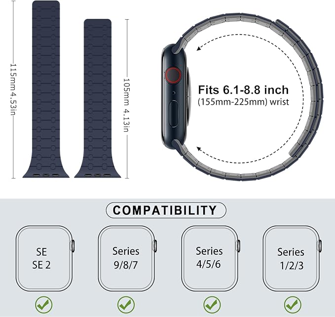 [コンパチブル モデル& サイズ]: Amizee マグネット シリコン watch バンド コンパチブル と 38mm 40mm 41mm 42mm シリーズ 10, シリーズ 9, シリーズ 8, シリーズ 7, SE, シリーズ 6, シリーズ 5, シリーズ 4, シリーズ 3, シリーズ 2, シリーズ 1. 6.1-8.8インチの手首にフィット(155mm-225mm). 注:ご注文の前に、時計の裏側に記載されているサイズをご確認ください。