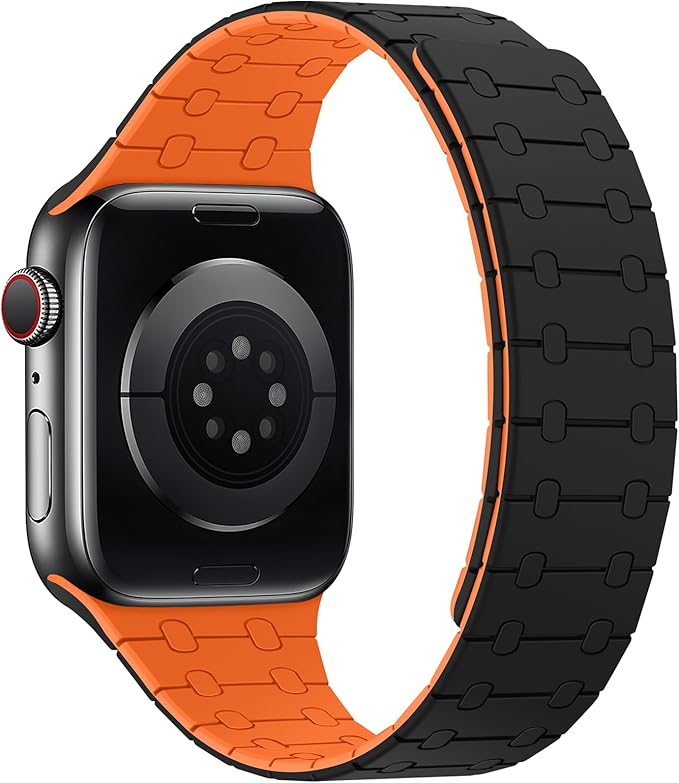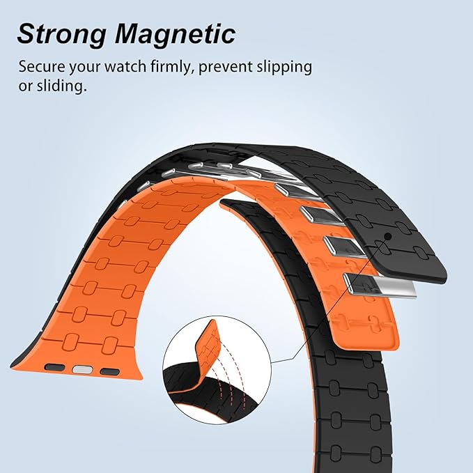 [Amizee] コンパチブル アップルウォッチ バンド 49mm 46mm 45mm 44mm 42mm 41mm 40mm 38mm シリコン強力な磁気 バンド アップルウォッチ Ultra 2/Ultra シリーズ 10/9/8/7/6/5/4/3/2/1/SE 用(グレー/オレンジ, 38mm/40mm/41mm/42mm)