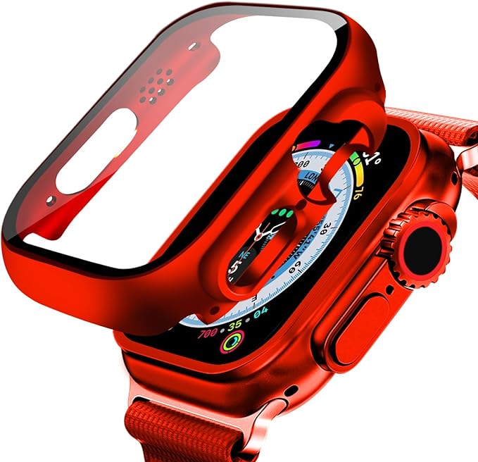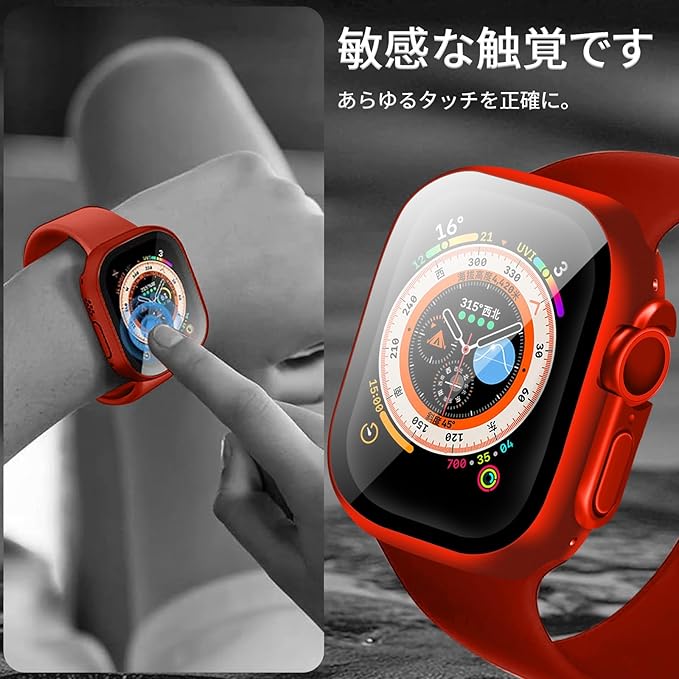 【2枚セット】ANYOI 対応 Apple Watch ケース 49mm 保護 ケース アップルウォッチ カバー ガラスフィルム 一体型 アップルウォッチ ケース 耐衝撃 apple watch カバー 高透過率 Apple Watch Ultra2/1 49mm アップルウォッチウルトラ2/1 49mm 対応 レッド