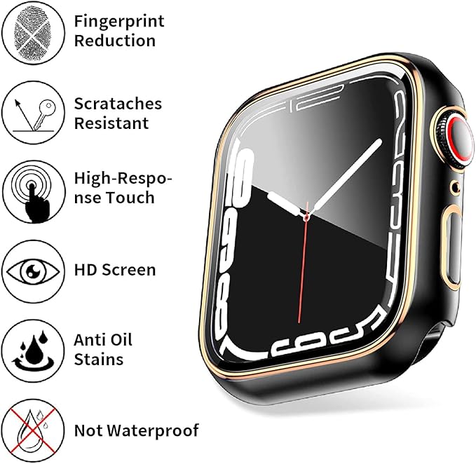 ANYOI 対応 Apple Watch ケース Series 9/8/7 45mm 保護 アップルウォッチ カバー ガラスフィルム 一体型 メッキ加工 アップルウォッチ ケース 耐衝撃 Apple Watch カバー 全面保護 装着簡単 高耐久 高透過率 PC素材 光沢のブラック/ローズゴールド