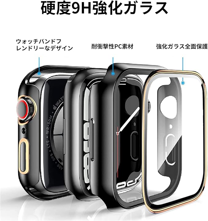 ☆高品質素材: Apple Watch ケースの画面部分が硬度9Hで強靭な日本旭硝子素材を採用して耐傷、耐衝撃のは強い。スマートウォッチ本来の美しさをそのままに保つことが可能です。