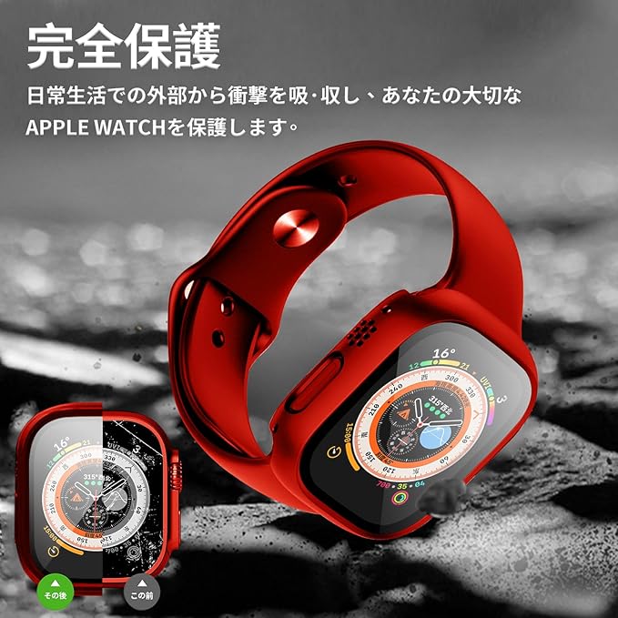 ANYOI 対応 Apple Watch ケース Ultra 2/1 49mm 保護 アップルウォッチ カバー ガラスフィルム 一体型 アップルウォッチ ケース 耐衝撃 Apple Watch カバー 全面保護 装着簡単 高耐久 高透過率 PC素材 レッド