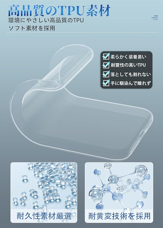 高透明:透明度の高いバックカバーが後ろからの衝撃を守り、本来の美しさを活かしたクリアソフトケース。ケースはとても柔軟なので、取り付けも取り外しも簡単にできます。
