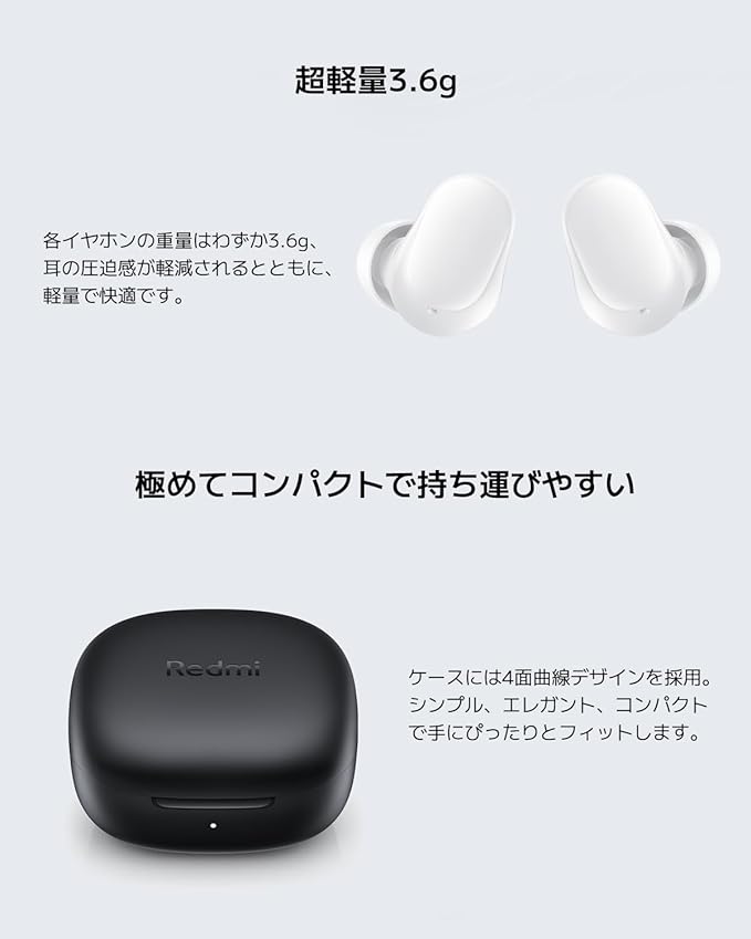 Xiaomi ワイヤレスイヤホン Redmi buds 6 Play 36時間の再生時間 AI 通話時ノイズリダクション 低遅延モデル 超軽量 Google Fast Pair対応 急速充電 USB Type-C ホワイト a