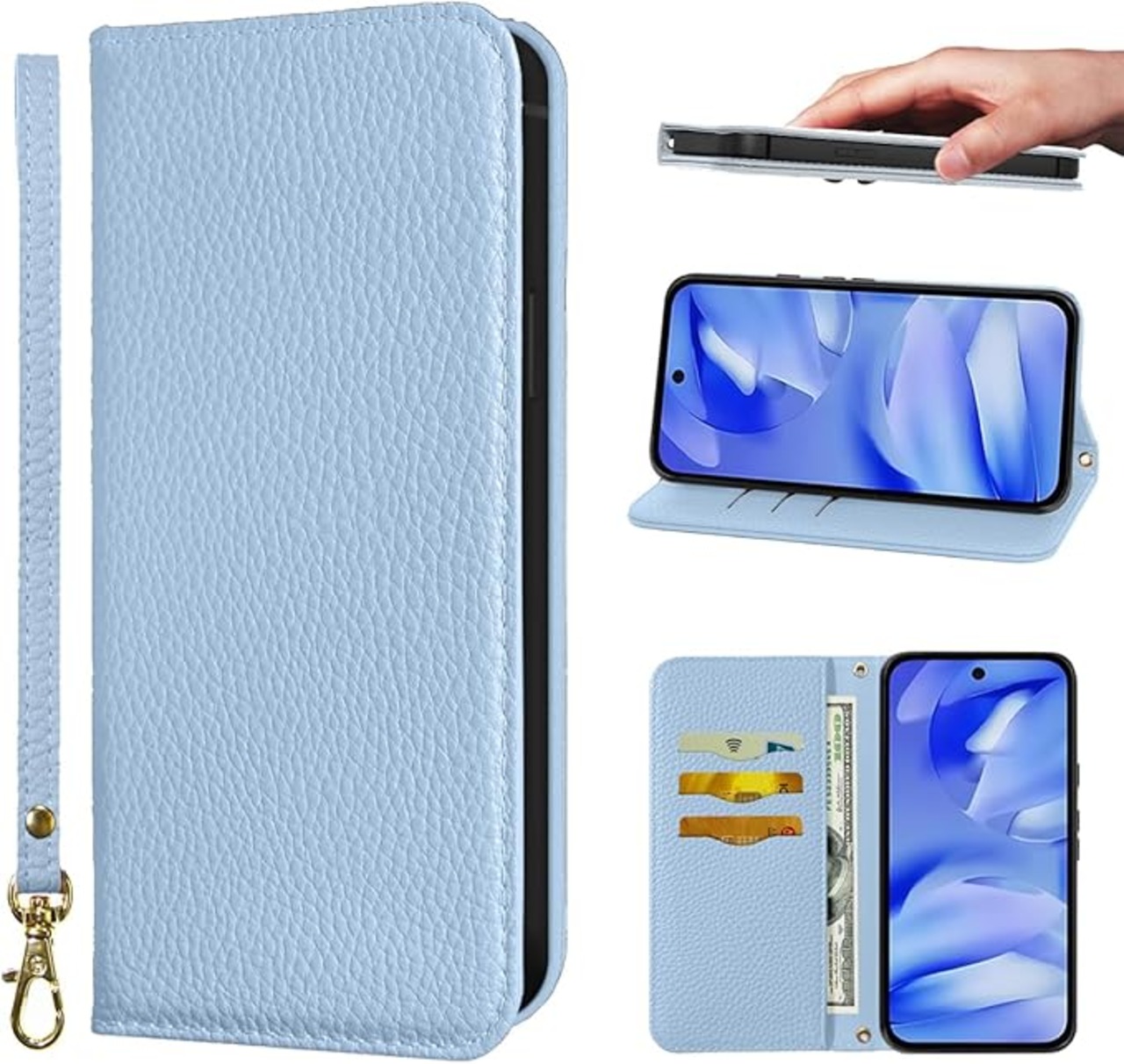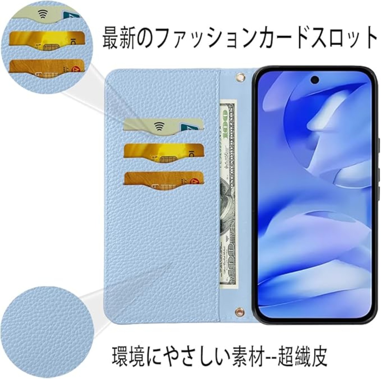 NanHou Google Pixel 9A 5G ケース 手帳型 超繊皮カバー Google 9A 手帳型 耐衝撃 保護カバー 内蔵マグネット 財布型 Pixel 9A 携帯カバー カードポケット スタンド機能 リストバンド - ライトブルー