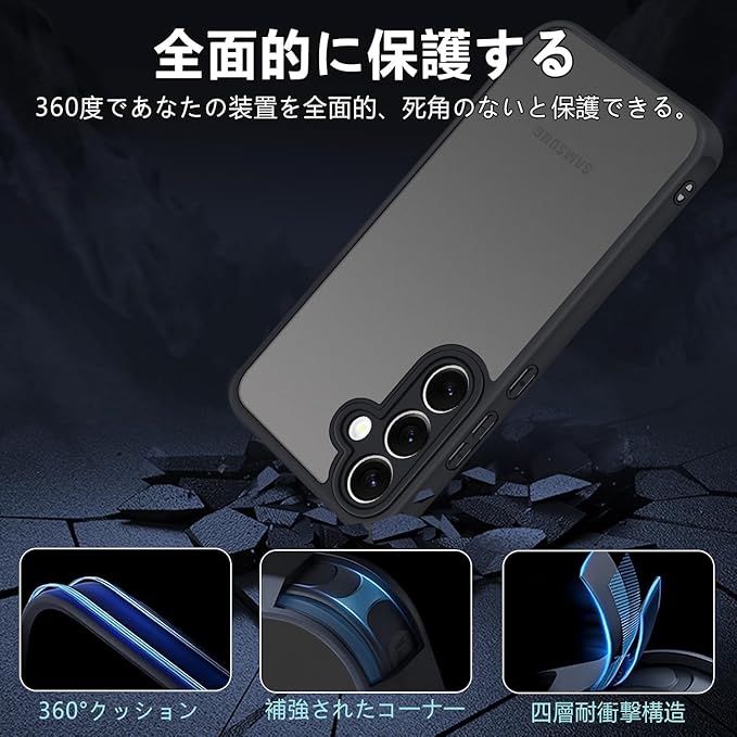 Samsung Galaxy S25 ケース 半クリア 耐衝撃 滑り止め 指紋防止 ギャラクシー S25 ケース 半透明 TPU+PC素材 韓国 ファッション スマホケース マット感 黄変防止 耐久性 人気 ストラップホール付き サムスン ギャラクシー S25 携帯ケース(ブラック)