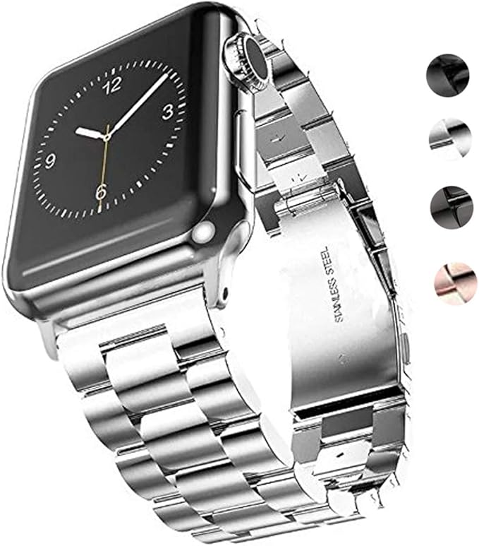 SUNDAREE Compatible with Apple Watch band バンド42mm&44mmステンレス、あっぷるうぉっち バンド 、アップルウォッチバンド、ステンレススチール製バンド、ステンレス留め金製、for Apple Watch ベルト、全機種対応 for Apple Watch Series SE/6/5/4/3/2/1(スチール製、銀42&44mm)