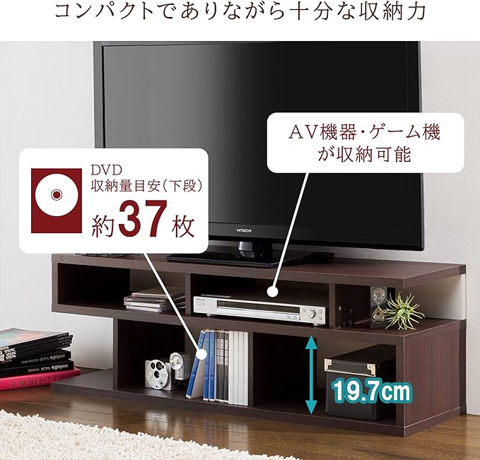 [50V型対応] 白井産業 テレビ台 ゲーム機収納 TV ダークブラウン 幅117.7 高さ38.4 奥行29.5cm KI2-4012DK キアエッセ2