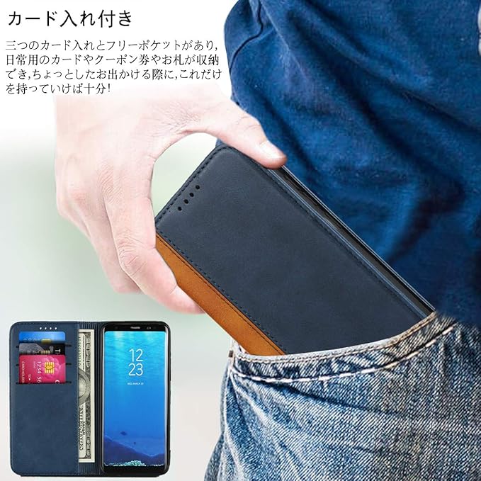 AQUOS R3 ケース 手帳型 SH-04L docomo ドコモ/ SHV44 au/SoftBank カバー 808SH 全対応 アクオス SH04L ケース SHV44 手帳型 808SH ケース シャープ R3 手帳型ケース スマホケース 携帯ケース 手帳型 カバー 適用 case 内蔵マグネット スタンド機能 カバー 落ち着いた色 耐衝撃 2色組合せ レトロ ネイビー