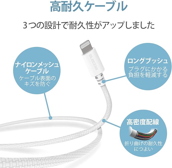 エレコム Lightningケーブル ライトニング iPhone 充電ケーブル 高耐久 【 iPhone SE3 / SE2 / 14 / 13 / 12 等対応 】 Apple認証品 1m ホワイト MPA-FUALS10WH