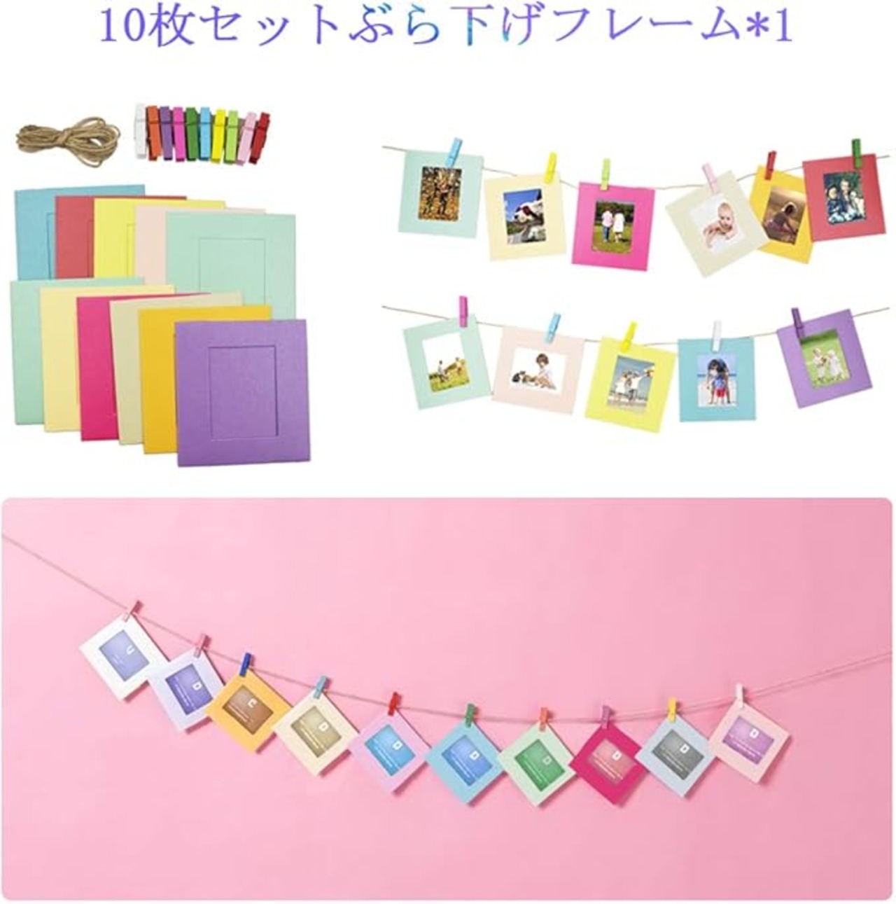 チェキカメラケース(PUレザー)*1、ショルダーストラップ*1、チェキ専用自撮り接写レンズ*1、チェキ専用カラーフィルター*4(ピンク、イエロー、浅いブルーと青みどり)、チェキフォトステッカー20枚入り*2、壁掛け式フォトフレームセット1(クリップと縄付き)、チェキ用アルバム *1、コーナーステッカ78枚入り*4