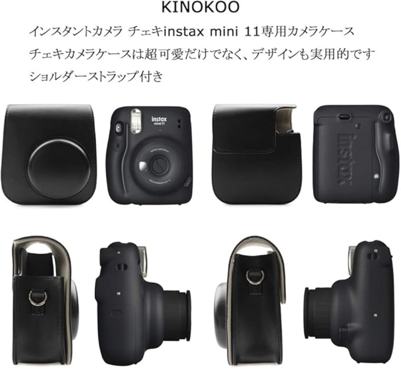 kinokoo Fujifilm チェキ instax mini 11 ケース instax mini 11 カメラケース アクセサリー 8点セットC(BK)