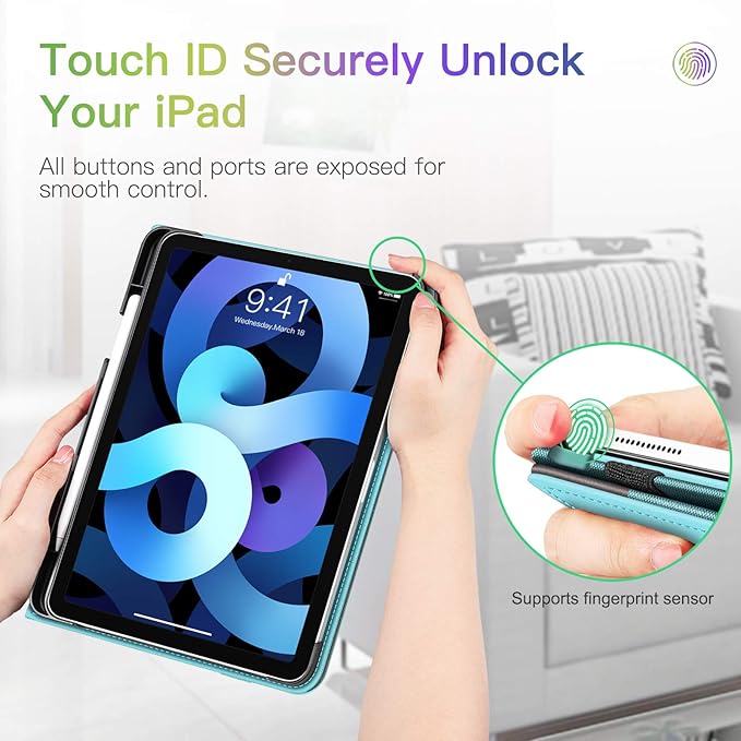 Fintie iPad Air 11インチ(M3 / M2) / 5 / 4 ケース 10.9 インチ 2025/2024/2022/2020 保護カバー Apple Pencil 収納可能 Pencil 2 ワイヤレス充電対応 2つ折スタンド マルチ視角 オートスリープ機能付き 傷つけ防止 PU合成レザー(ターコイズ)