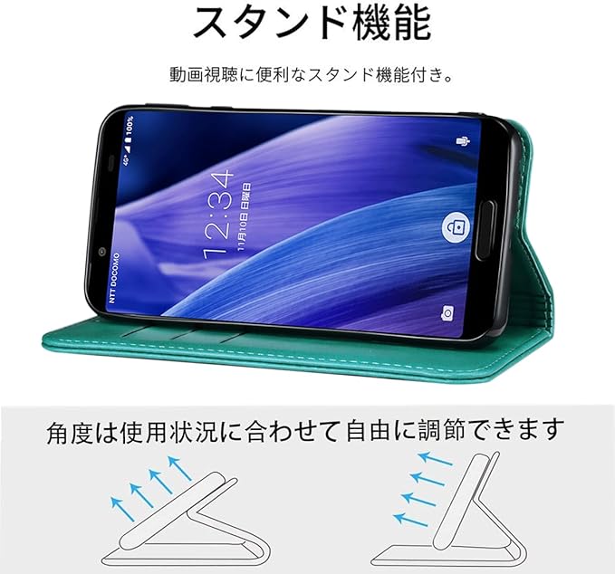 AQUOS Sense3 ケース 手帳型 高質PUレザー Sense3 Lite カバー Sense3/Sense3 Lite SH-02M SHV45 通用ケース 耐衝撃 内蔵マグネット開閉式 ベルトなし スマホケース おしゃれ カードポケット スタンド機能 便利 スプラット同梱 携帯ケース(ターコイズ)