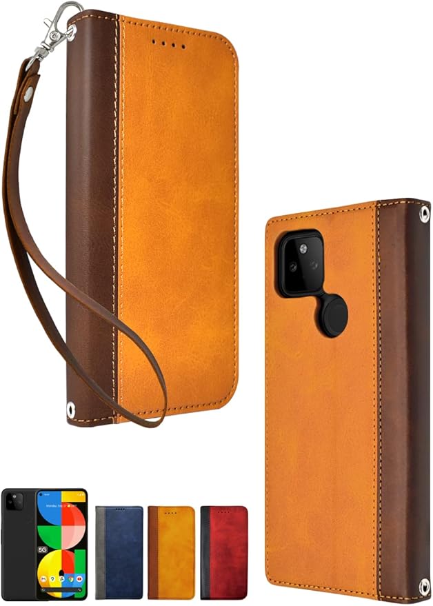 シズカウィル Google Pixel5a ケース カバー 手帳型 本革調 レザーケース イエローブラウン ブラウン 1個入り