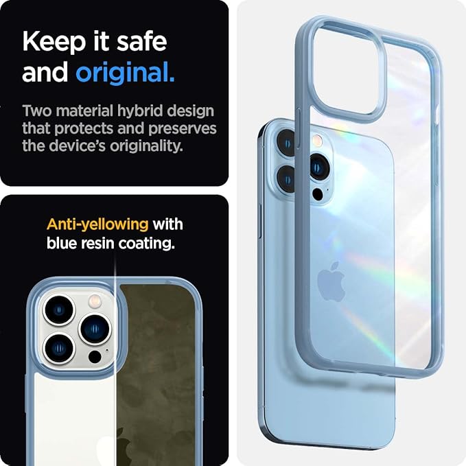 Spigen iPhone13Proケース クリア 衝撃吸収 米軍MIL規格取得 透明 TPU バンパーケース 2重構造 耐衝撃 すり傷防止 黄変抑制 ワイヤレス充電対応 ウルトラ・ハイブリッド ACS04132 (シエラ・ブルー)