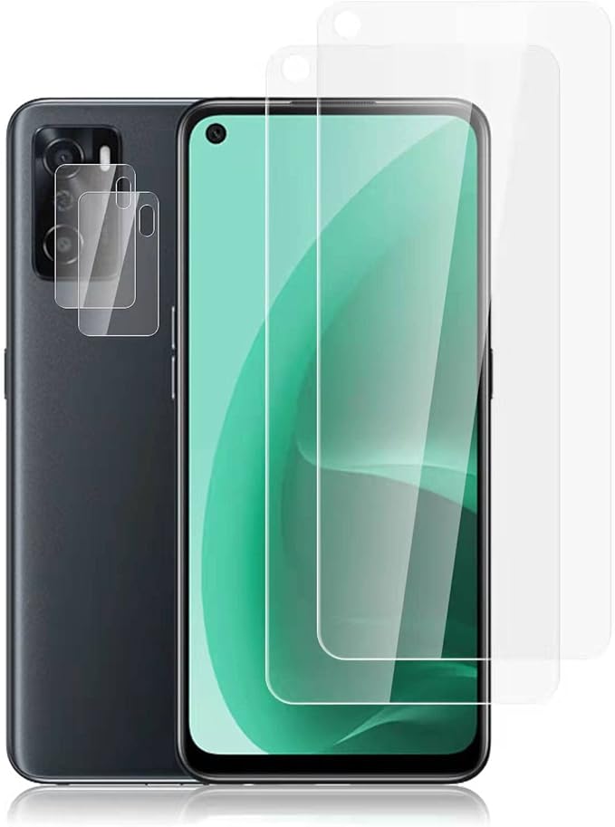 【2+2】OPPO A55s 5G 用 ガラスフィルム + カメラフィルム 強化ガラス 耐衝撃 指紋防止 気泡ゼロ 自動吸着 貼り付け簡単 OPPO A55s 5G 用 レンズ保護(2枚入)+液晶保護フィルム(2枚)