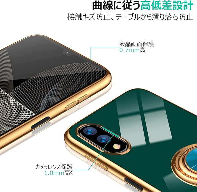 【WYEPXOL】AQUOS wish ケース リング付き 耐衝撃 落下衝撃吸収 tpu シリコン 軽量 薄型 メッキ加工 ストラップホール付き アクオス wish ケース 全面保護 スタンド機能 車載ホルダー対応 360 回転 耐久 落下防止 人気 携帯カバー 緑 ZW74-08
