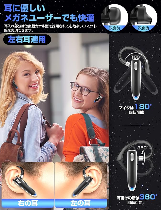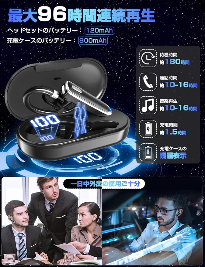 新登場 Bluetoothヘッドセット Bluetoothイヤホン 片耳 掛け式 片耳イヤホン bluetooth 最大96時間連続使用 充電ケース付 ワイヤレスイヤホン LEDディスプレイ 左右耳兼用 AAC対応 ハンズフリー通話可