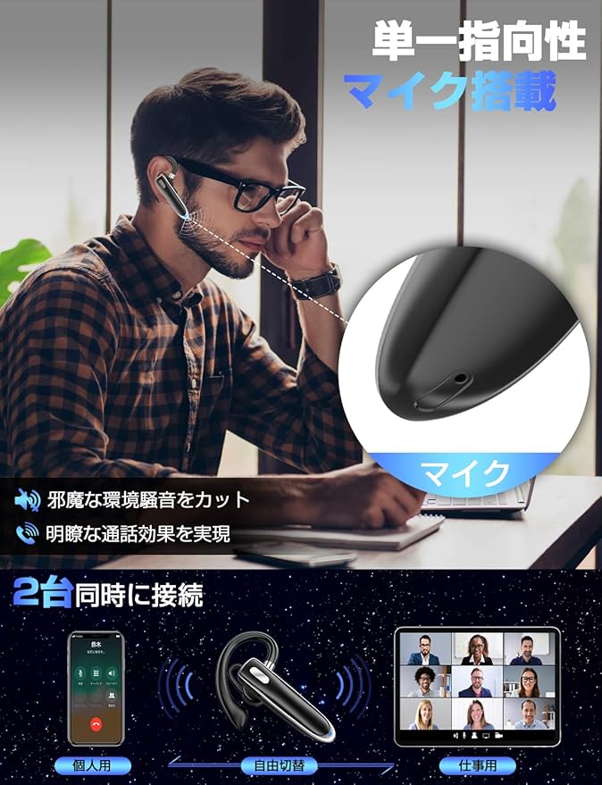?? 【最大96時間連続再生&800mAh大容量充電ケース付き&LEDバッテリー残量表示】テレワークの普及に伴って、必要性を増してきたweb会議。時には長丁場となるweb会議を、ストレスなく進めていきたい方が多いです。お客様の声を集めて、のBluetoothヘッドセットは省電力の電池が内蔵されて、最大およそ96時間の連続再生が可能です。800mAh収納ケースが付いていて、長時間通話していても電量不足になる心配がありません。LEDランプが付くので、バッテリー残量を数字で一目で確認出来ます。Type Cケーブルで約1.5時間でフル充電になり、本体連続再生は10-16時間可能です。また充電ケースと併用すれば合計で約96時間の長時間使用が可能です。(ご注意:再生時間は充電時間、音量調整、再生内容、使用環境、個人使用習慣、接続デバイスなどによって