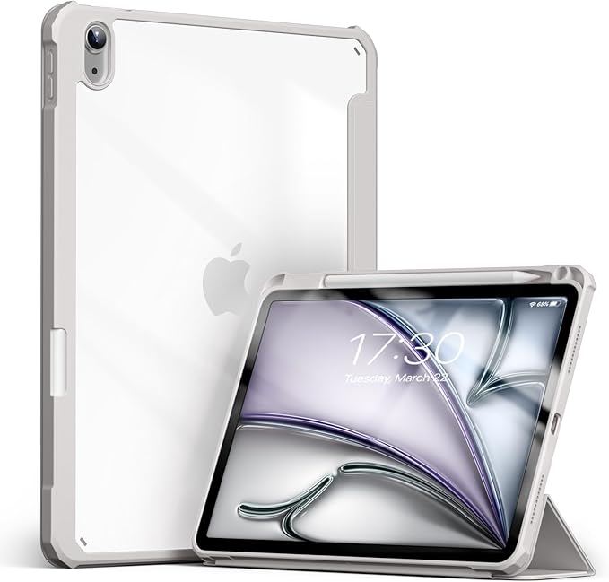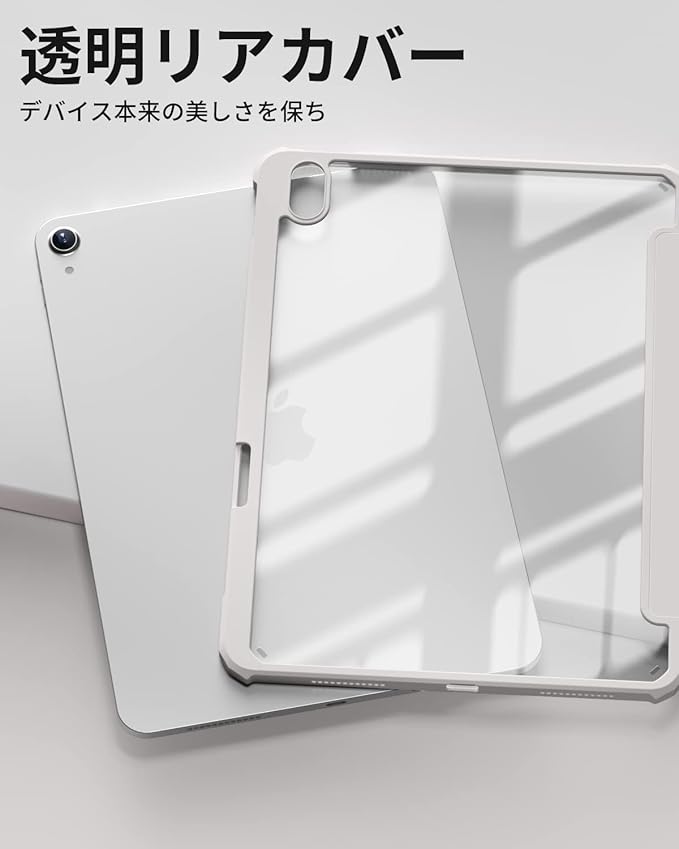 Aoub iPad Air 11インチ ケース (M3/M2、2025/2024) iPad Air 第5/4世代 2022/2020 10.9インチ iPad air ケース 透明バックカバー Pencil収納可能 ワイヤレス充電対応 三つ折スタンド スリープ機能 軽量 薄型 傷つけ防止 PU合成レザー TPU グレー