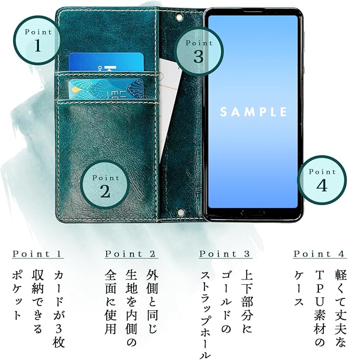 シンプルスマホ6 A201SH ケース 手帳型 カバー a201shケース a201shカバー シンプルスマホ6ケース シンプルスマホ6カバー 手帳型ケース スマホケース 新タフ turquoise