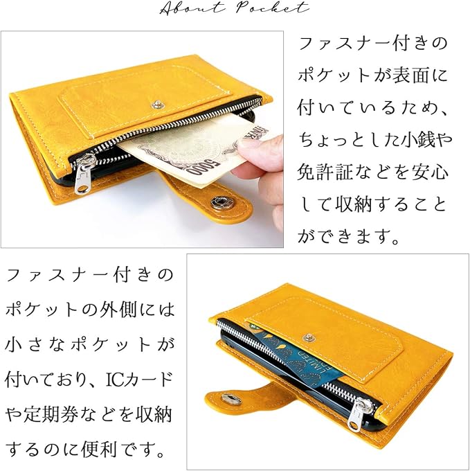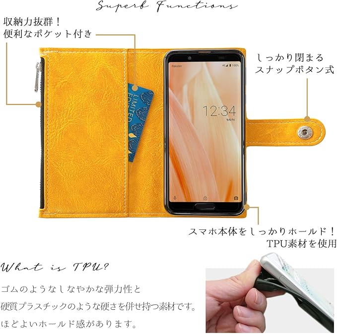 AQUOS R7 SH-52C A202SH 専用 ケース カバー 手帳型 SH52C SH-52Cケース SH-52Cカバー A202SHケース A202SHカバー SH52Cケース SH52Cカバー AQUOSR7 手帳型ケース 手帳型カバー スマホケース チャック付き イエロー