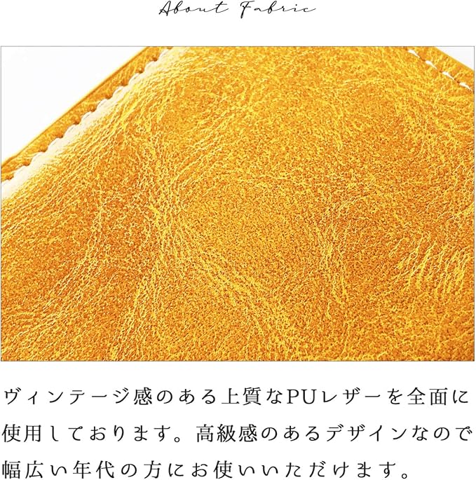 上質な人造革生地を使用したスマホ手帳型ケースです。汚れと傷に強い合成皮革の特性を最大限引き出しつつ、上質な質感と高級感のある風合いを実現しています。