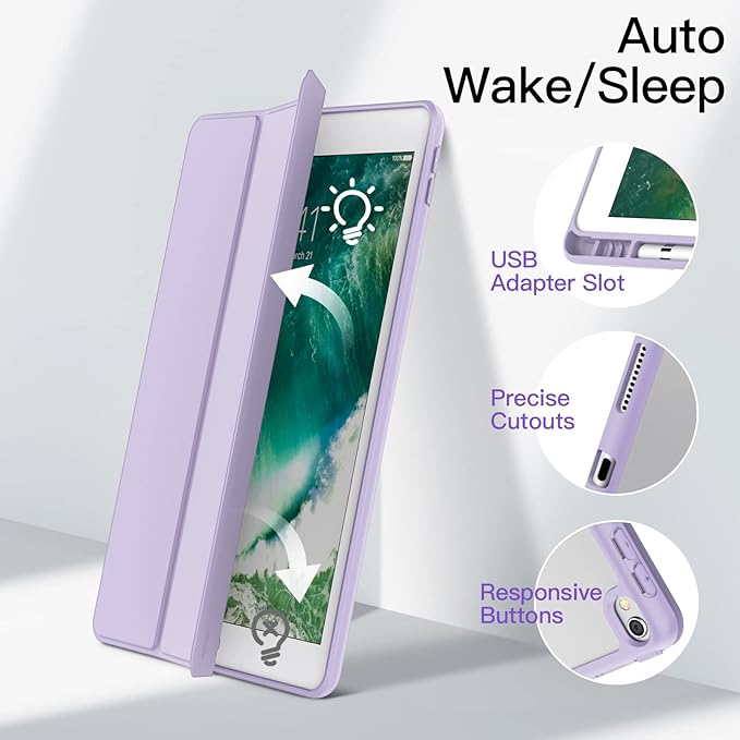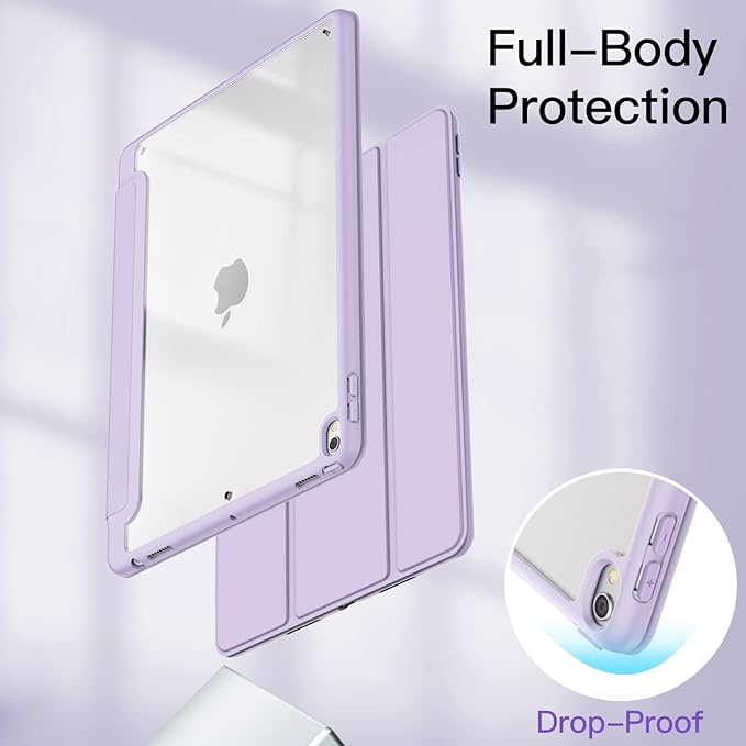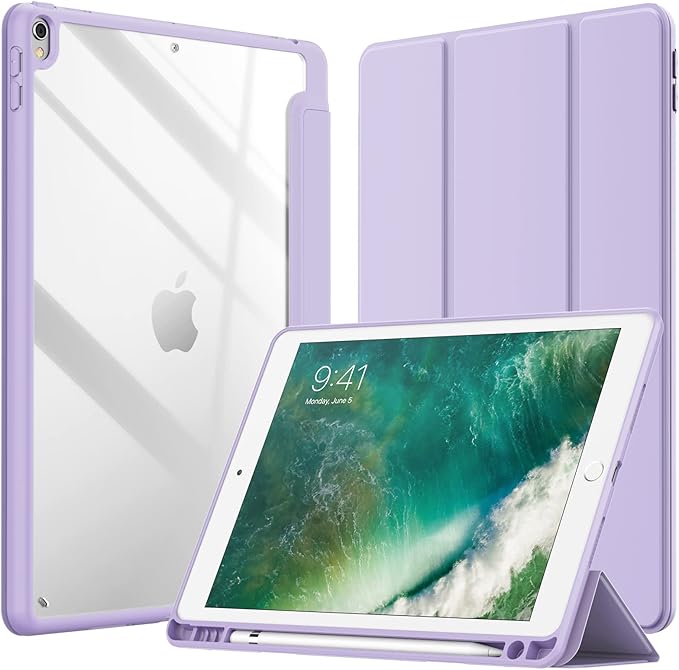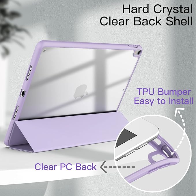 JETech iPad Air 3 (10.5 インチ 2019, 第3世代)とiPad Pro 10.5 ケース Pencil収納可能 透明バックカバー 薄型 スタンド 衝撃吸収 タブレットカバー オートウェイク/スリープ機能 (ライトパープル)