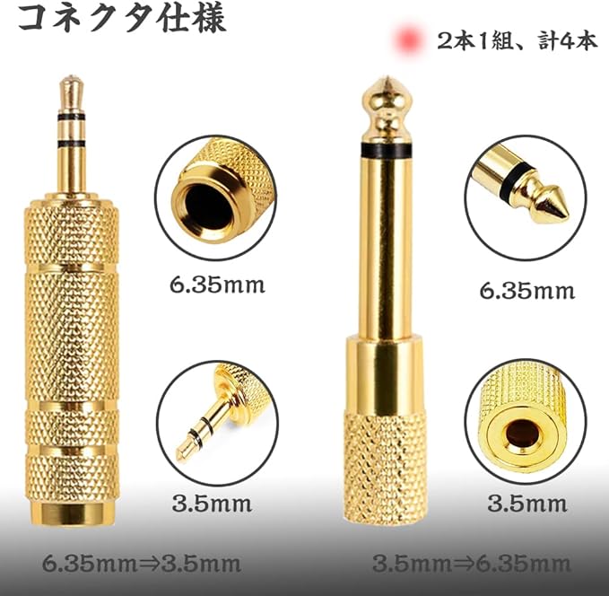イヤホンジャック 変換 アダプタ ステレオミニプラグ 6.35mm to 3.5mm 3.5mm to 6.35mm メスオス アンプ変換 金メッキ コネクタ ヘッドホン/マイク/スピーカー/電子ピアノ/ミキサー/プレーヤーなどに対応 4個入り