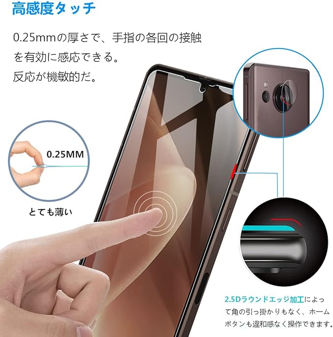 【2+2 セット】For Aquos Sense7 Plus ガラスフィルム(2枚入り)+カメラフィルム(2枚入り)Kakuki Sense7 Plus レンズ保護フィルム 全面保護フィルム 硬度9H 高透過率 飛散防止 耐衝撃 液晶保護フィルム 指紋防止 気泡ゼロ 自動吸着 貼り付け簡単 強化ガラス Sense7 Plus アクオス センス 7 Plus 対応 (Sense7 Plus)