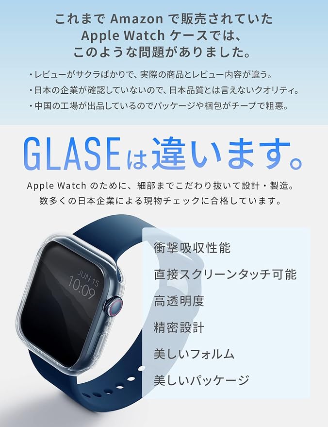 【特徴】超スリムでありながら強力な保護機能を搭載。細部にこだわった精密な設計と、シンプルなミニマルなデザインで、主張することも、かさばることもなくApple Watchを傷から保護します。スクリーン部分は直接触れられるように、窓にな