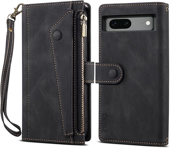 【Strap Series 財布型】Google Pixel 7 ケース Pixel 7 ケース 手帳型 ストラップ付き 磁石付き カードホルダー 財布型 スタンド機能 耐衝撃 Google Pixel 7 カバー高級 肩掛け ストラップ付き スマホケース(Google Pixel 7、ブラック)