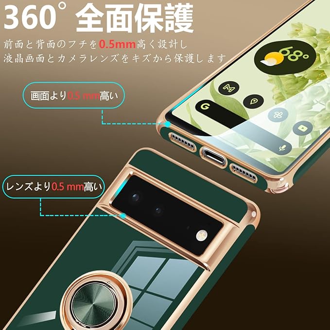 【高品質のTPU素材】Google Pixel6 ケース リング スマートフォン専用保護カバー 。高弾性TPU素材を採用、日常生活での消耗に耐えしっかり保護できるので、四角を強化することで、落下や衝撃による損傷を軽減します。 画面とカメラを保護するために上げられたベゼル。落下の衝撃から重要なスマホを守ってくれます。安定することで、スマホの操作性も優秀です。