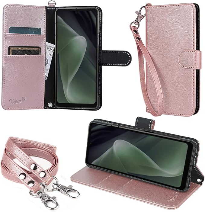wisers AQUOS sense7 plus ケース カバー 手帳型 [ ストラップ 2種付 ] Sharp シャープ Softbank ソフトバンク スマートフォン スマホケース ハンドストラップ ネックストラップ カードホルダー [2022 年 新型] ローズゴールド