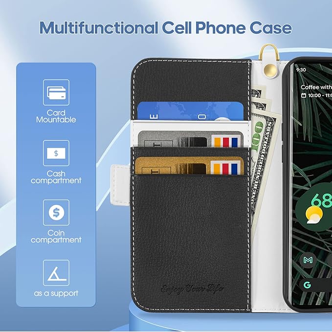 ALSDKEZI Google Pixel 7 ケース 手帳型, グーグル ピクセル 7 用 カバー, 人気おしゃれ財布型カード収納 携帯ケース, ライチ柄高質PUレザー 良い触り心地 ケース サイドマグネット式 スマホケース スタンド機能 耐衝撃 保護カバー 大人 男女兼用 (ブラック/Black)