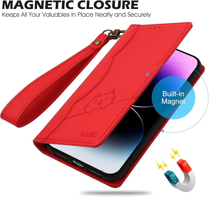 Kedic Google Pixel 7 ケース 手帳型 ピクセル7 ケース 可愛い笑顔の猫模様 手作り携帯カバー Pixel7 カバー グーグル ピクセル 7 ケース おしゃれ カード入れ 財布型 と横方向のスタンドが 多機能 Google Pixel7 手帳型カバー 内蔵マグネット式 純色シンプルデザイン Pixel7 ケース 赤