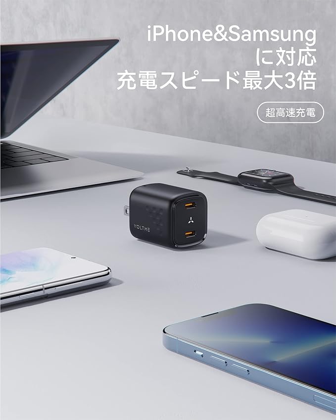 【PD 30W出力の急速充電器・スマホもタブレット端末も充電可能】単ポート最大出力30WでiPhone、Android等のスマートフォンのみならず、タブレット端末、MacBook Airの充電にも最適です。旅行や出張などの時にこれ1つで、多くの機器の充電を満足して、利用機器毎に異なる充電器を持ち運ぶ必要がありません。VOLTME充電器で身軽な旅に!