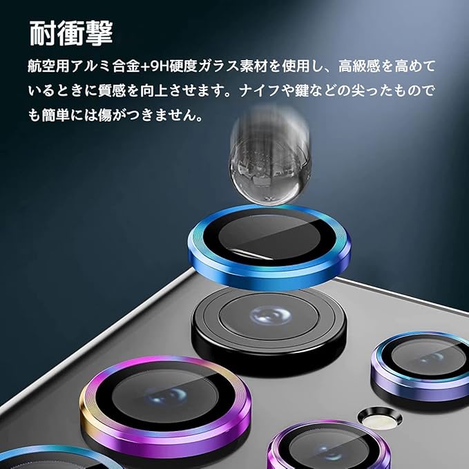 【耐衝撃性】巨大化になったカメラ、衝撃や接触からの破損のリスクも上がり、カメラ保護はもはや必須カメラカバーはギャラクシーと同じガラス、また航空機用アルミ合金を採用、耐衝撃性が普通製品より20倍高く、盛り上がったレンズを角や落下への衝撃からしっかりと保護。更に、表面にレ一ザ焼入れ技術を採用、優れた硬
