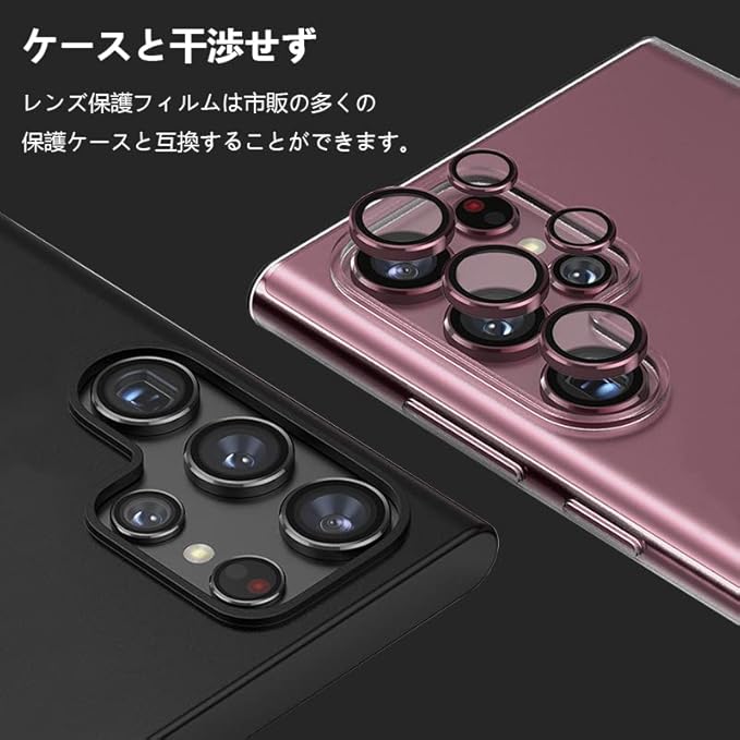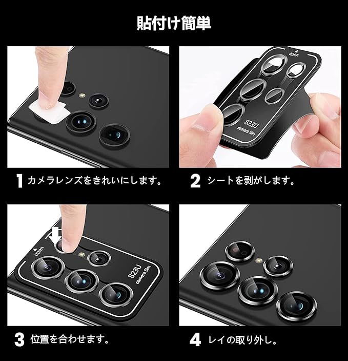 【高級感漂う単体仕上げ】Galaxy S23 UltraカメラフィルムGalaxy S23 Ultra の独立型カメラために生まれた新作。フィルム全周はアルミ合金製リングとの融合で、本体のお洒落を向上しながら、ギャラクシーS23 Ultra本体の色味にもぴったり、抜群な一体感、上品な見栄えでカメラの魅力を格段にアップ。それに薄0.3mmのデザインと0.5gの軽さで、分厚さやケースと干渉などの悩みは全くない、いつでも楽に使える。