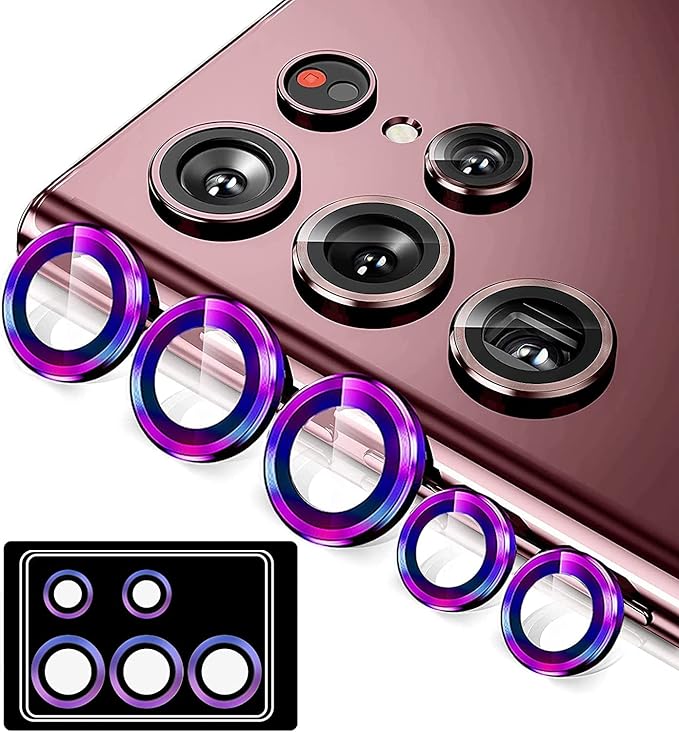 Galaxy S23 Ultra SC-52D SCG20 用 カメラフィルム [Kakuki] ギャラクシーS23ウルトラ 用 カメラ保護フィルム 薄型 強化ガラス 耐衝撃 独立型 露出オーバー防止 アルミ合金 カメラカバー (Galaxy S23 Ultra, 多色)