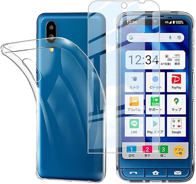 【1枚セットガラスフィルム+1個ケース TPU】シンプルスマホ6 Simple Sumaho6 a201sh/BASIO active SHG09 強化ガラスフィルム シンプルスマホ6 液晶保護フィルム 採用 高透過率 薄型 硬度9H 飛散防止処理 シンプルスマホ6 専用クリア ソフト シリコン TPU 保護ケース 超軽量 衝撃防止 落下防止 手触り良い(シンプルスマホ6)