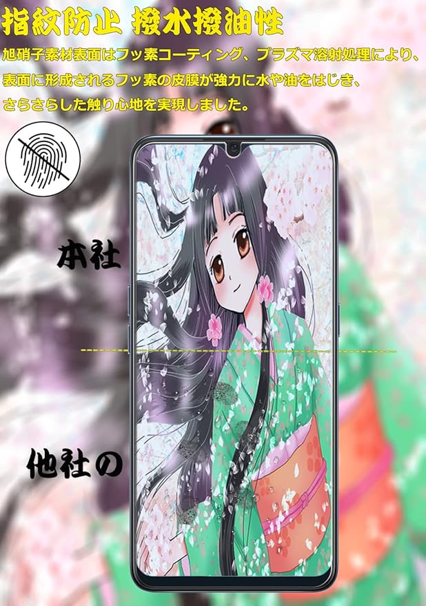 【指紋防止・飛散防止】撥油コーティング加工されているため、ホコリや指紋など汚れにくくなっています。付着しても簡単に拭き取れます。ガラスフィルムは飛散防止加工されておりますので、万が一割れの場合でも、破片が飛び散らず張り付いた状態になります。