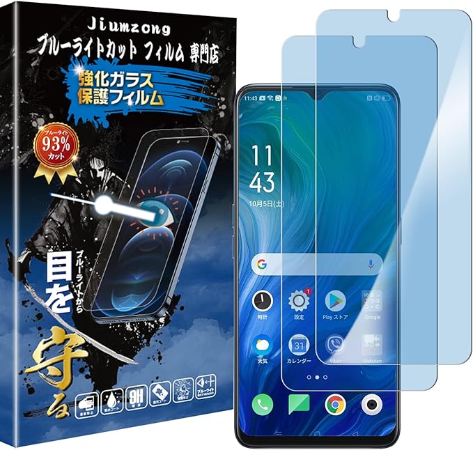 【ブルーライトカット 93%】【目の疲れ軽減】OPPO Reno A 用の ガラスフィルム RenoA 用の 液晶保護 フィルム 保護ガラス レンズ保護フィルム