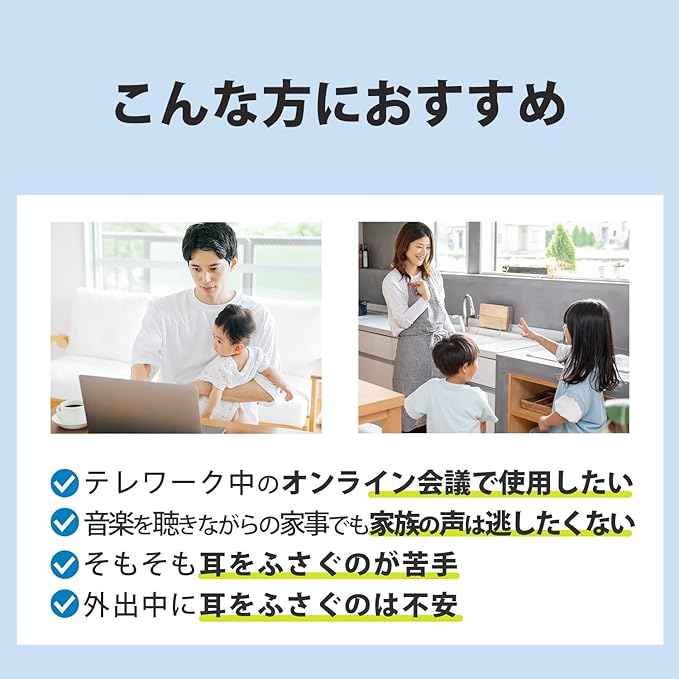 心地よさを追求すべく、音の広がりに加えて、聞きなれたサウンドにもこだわりました。一般的なイヤホン同様、スピーカー(ハウジング)から音が聞こえるため、骨を揺らす骨伝導イヤホンとは、音を鳴らす仕組みが異なります。