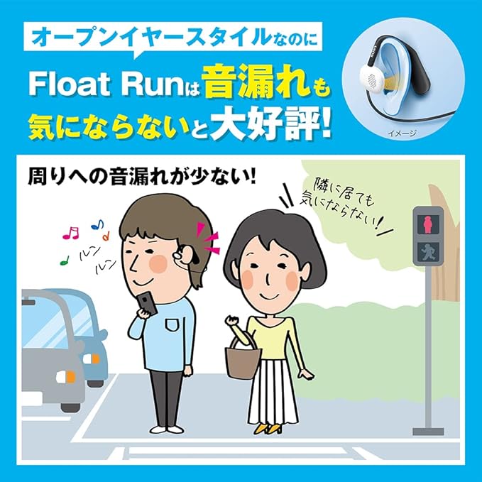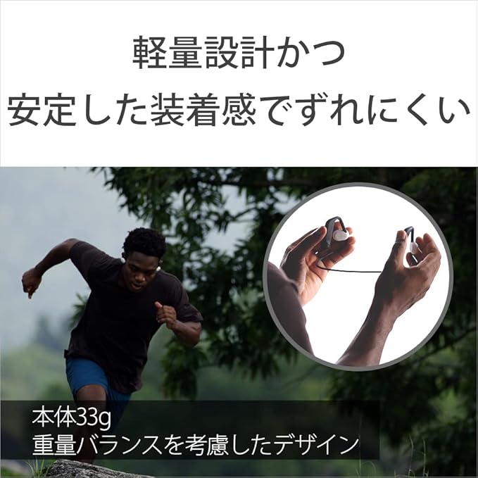 耳の前にスピーカーが浮くスポーツギア 開放型(オープンイヤー)を採用し、快適な装着感と高音質の両立を実現しました。耳の前にスピーカーが浮くという新たなリスニングスタイルが、まるで浮遊しながら走っているような、気持ちの良いランニング体験をもたらします。また、耳をふさがないため圧迫感がなく、イヤホンをしていても周囲の音を自然に聞くことができます。さらに16mmドライバー搭載により、厚みある低音域から、透明感ある高音域にいたるまで、バランスの良い高音質が楽しめます。正しいステレオイメージを維持したまま、自然な音が表現できるので、ランニングのモチベーションも高まります。