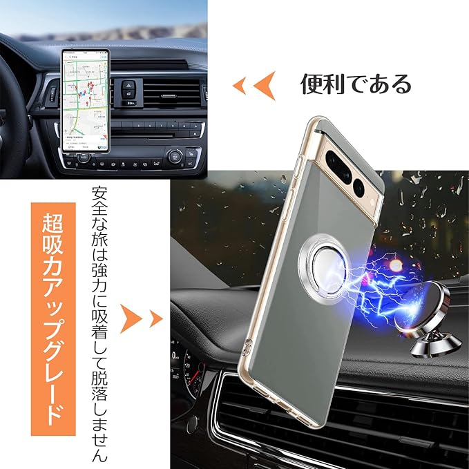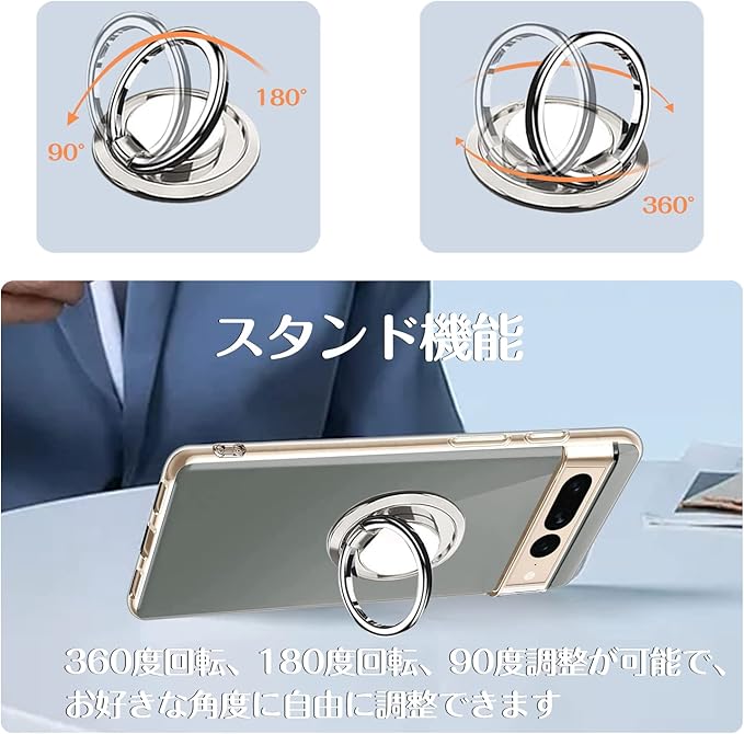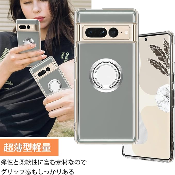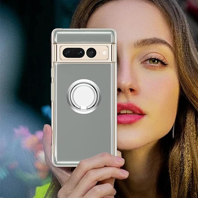 Dunluluoyin Google Pixel 7 Pro ケース クリア リング付き シリコン 耐衝撃 TPU ピクセル7 Pro カバー 透明 耐久 軽量 薄型 黄変防止 スタンド機能 車載ホルダー 360 回転 擦り傷防止 衝撃吸収 保護カバー