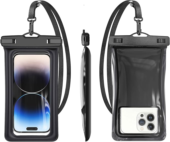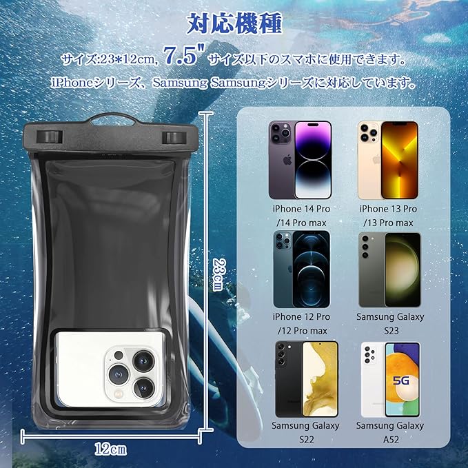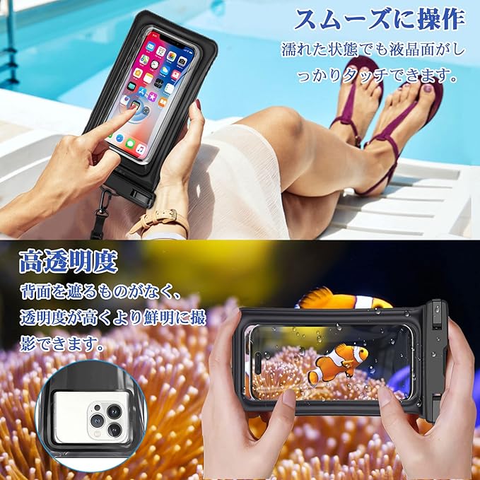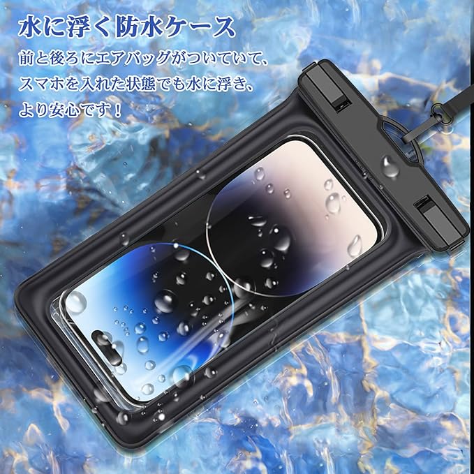 スマホ 防水ケース 海 【水に浮くタイプ/指紋/Face ID認証】スマホケース IPX8認定 水中・水上で操作できる 良いタッチ感度 顔認証 ロックがしやすい サイドボタンが押しやすい ストラップ付き 首掛け 高透過率 7インチ以下全機種対応 防水カバー 水中撮影 お風呂 釣り 海 海上アスレチックパークなど適用(水に浮くタイプ)ブラック